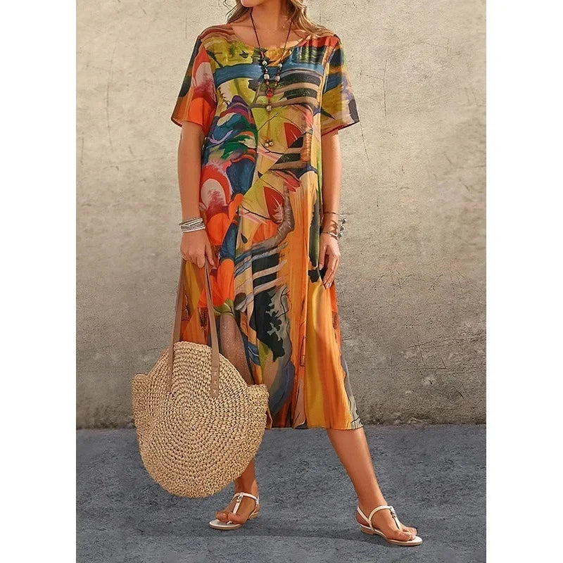 Luna™ | gebundene Taille Sommer Print Kleid